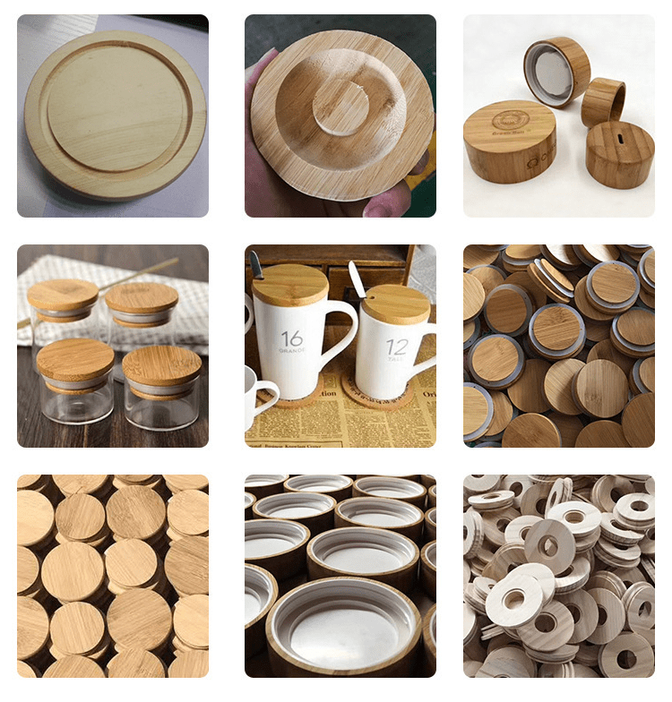 Bambu kapak yapımı, seçim, kesme, kopyalama,delik delme,fiziksel taşlama ve parlatma, ağda, pişirme ve lazer etiketleme özelliklerine sahiptir. Yenilenen bambu elyafını, güzel görünümlü, zarif, dayanıklı, tazeliği uzun süre koruyan, değişmeyen lezzet ve kirlilik içermeyen derin işlenmiş bambu kapak elde etmek için birleştirir.Bambu kapaklar, şişe kapakları,Çay seti kapakları,Ev dekorasyonu,El sanatları,Yemek gereçleri, Hediye paketleme vb.Alanlarda yaygın olarak kullanılmaktadır.